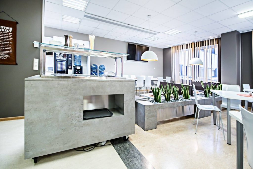 KIRJELDUS: Büroo vastuvõtu ala ja söökla eritellimusmööbli tootmine ja paigaldus.