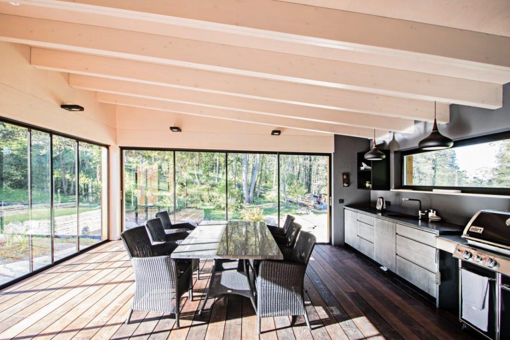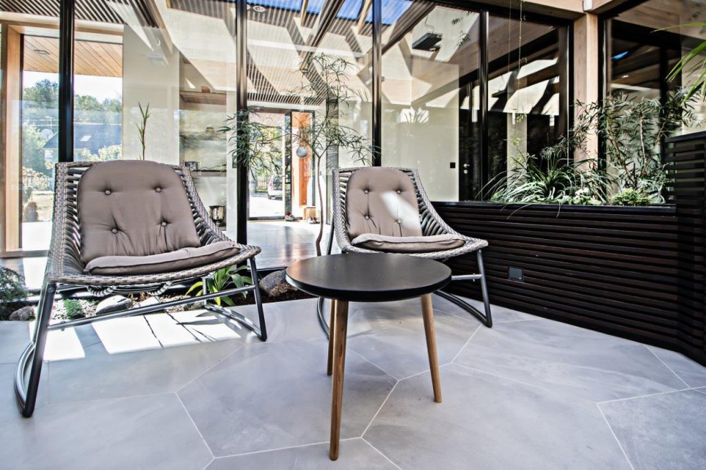 KIRJELDUS: Eramu eritellimusmööbel koos talveaia lillekastide ja trepikäsipuudega.